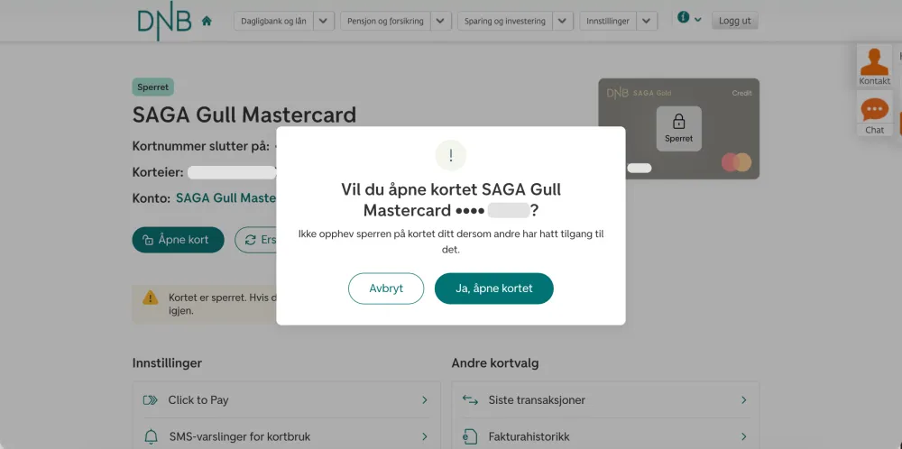 Dette er en steg-for-steg veiledning som viser deg hvor du skal trykke for å selv åpne et sperret kort