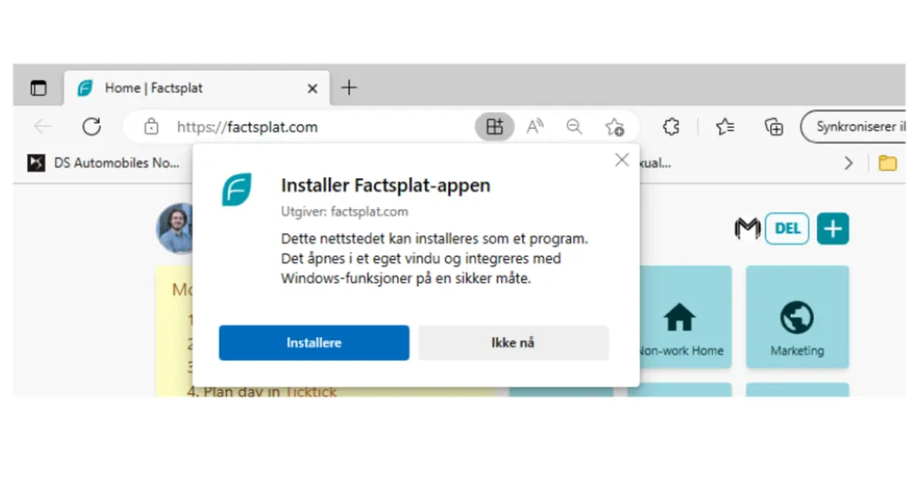 Valgfritt: En kort innføring om hvordan du installerer Factsplat på din datamaskin.