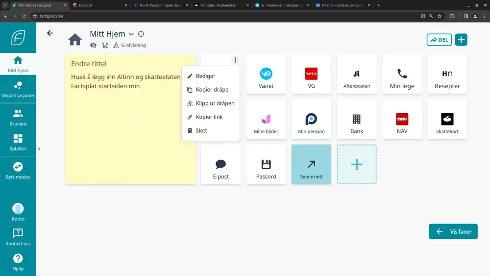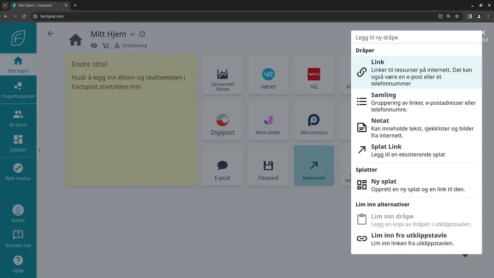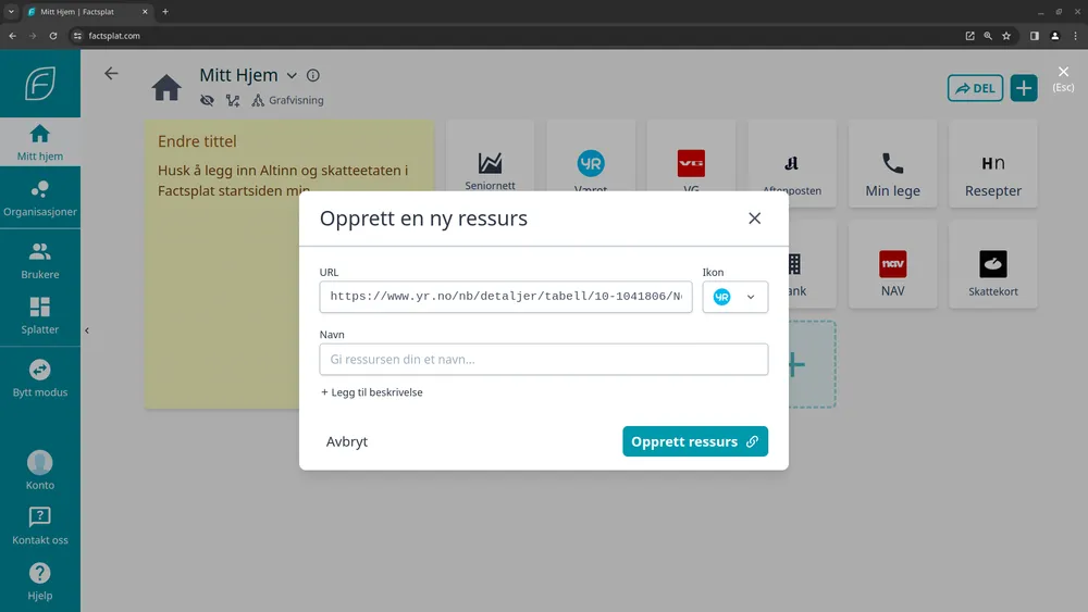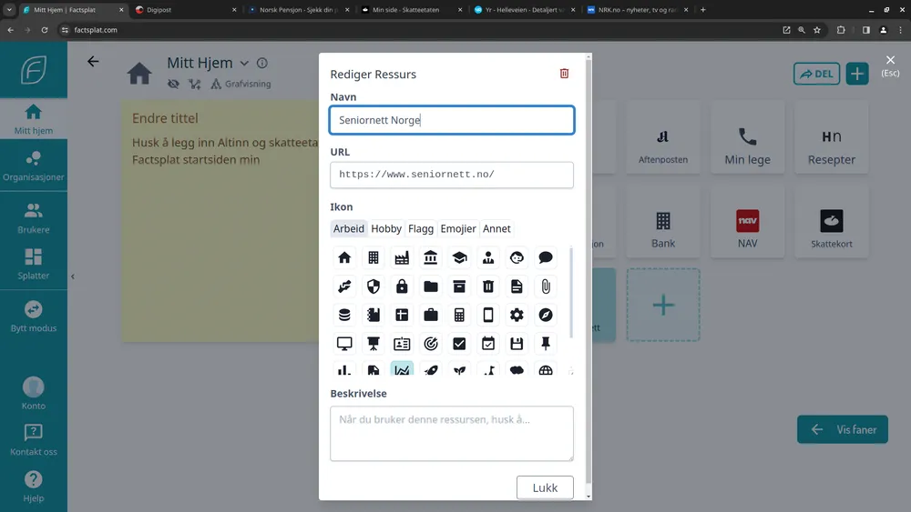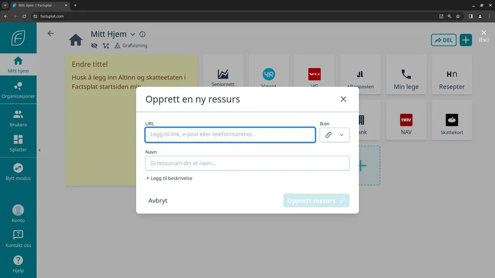Fullstendig gjennomgang av hvordan du kan komme i gang med Factsplat. Dette inkluderer: - Hvordan opprette bruker på Factsplat - Hvordan endre språk til norsk - Hvordan legge til dine lenker/nettsider - Hvordan legge inn nytt notat - Hvordan slette eller endre en lenke eller et notat.