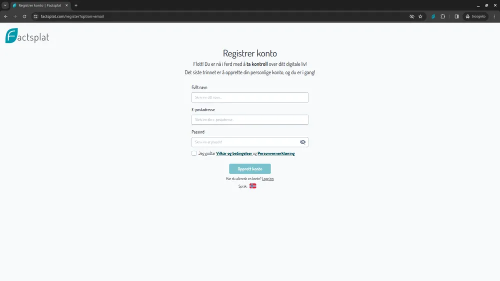 Hvordan opprette bruker på Factsplat