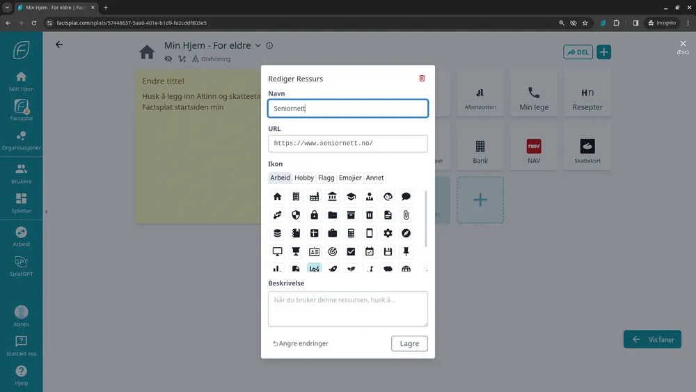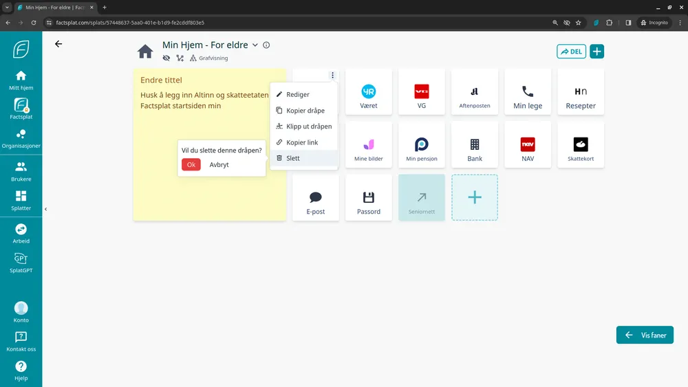 En kort innføring om hvordan du redigerer eller sletter lenker og notat på Factsplat.