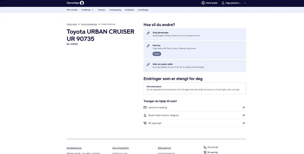 Slik endrer du antall kilometer for kjørelengden på forsikringen din
