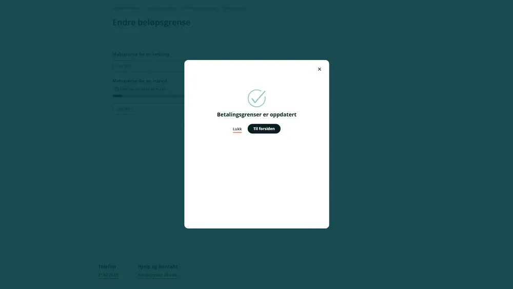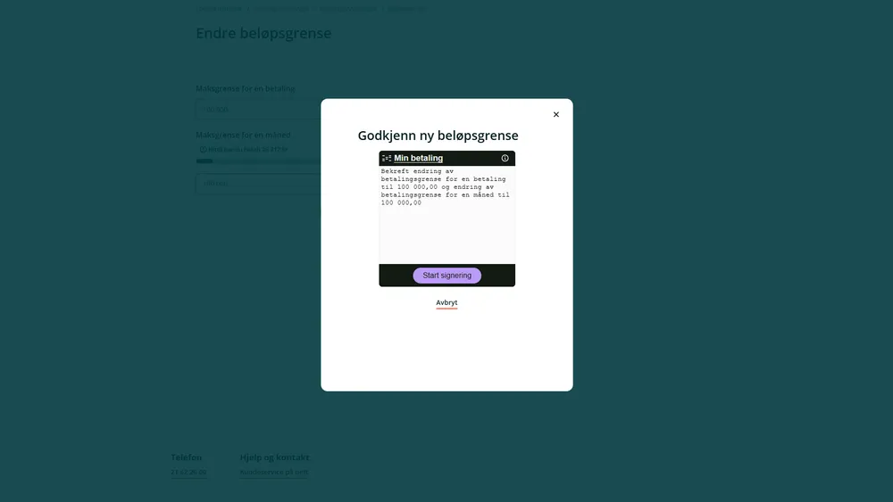 Denne veiledningen viser deg hvordan du kan endre beløpsgrensen i nettbanken. Veiledningen viser hvordan dette ser ut på en datamaskin.