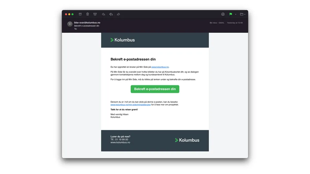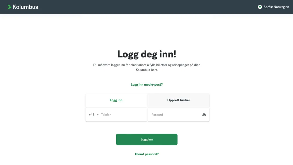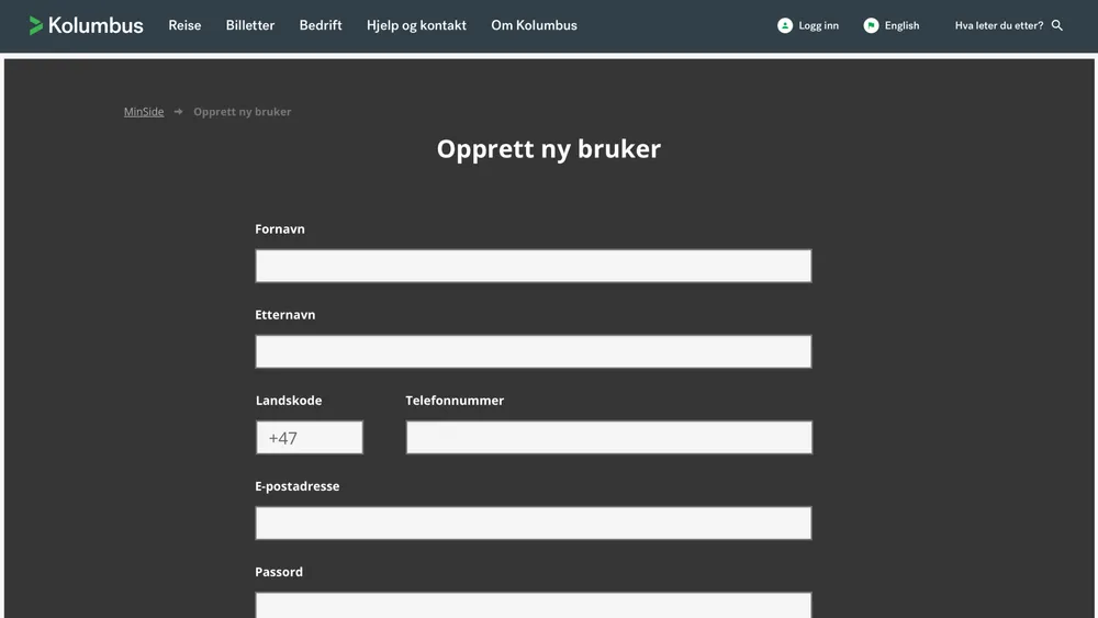 Med en bruker på MinSide på kolumbus.no, kan du blant annet fylle på Kolumbuskortet ditt og se din tidligere dialog med kundesenteret. Her kan du følge oppskriften for å opprette ny bruker på nettsiden.