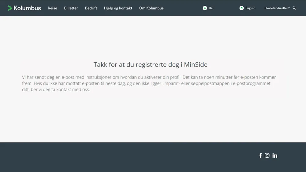 Hvordan lage ny bruker på MinSide på kolumbus.no