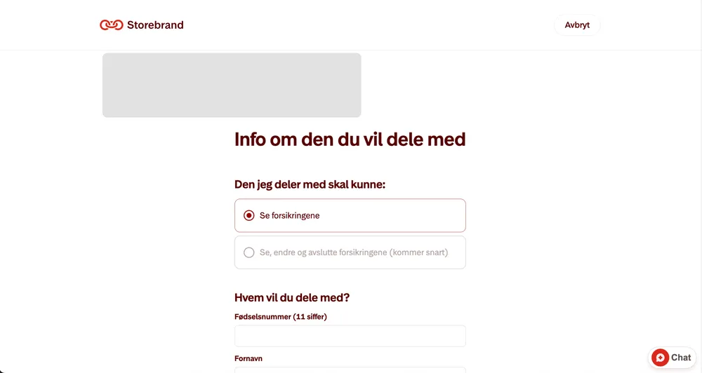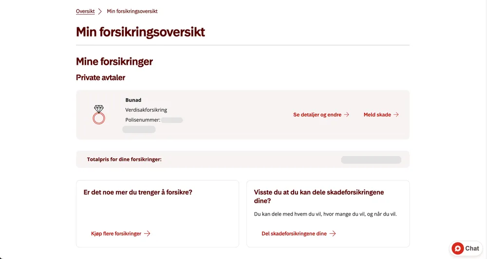 Denne veiledningen viser deg trinn for trinn hvordan du kan dele dine private skadeforsikringer (forsikringer for bil, hus og lignende), men ikke personforsikringer eller forsikringer du har gjennom jobben din. Du kan dele dem med samboeren din, ektefellen din eller andre personer over 18 år. Du gir dem muligheten til å se forsikringene, og delingen varer i to år, med mindre du avslutter den før det.